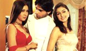 between Arjun (Nakul Kapur), Naina (Aarti Chabria) and Bobby (Kim Sharma). |